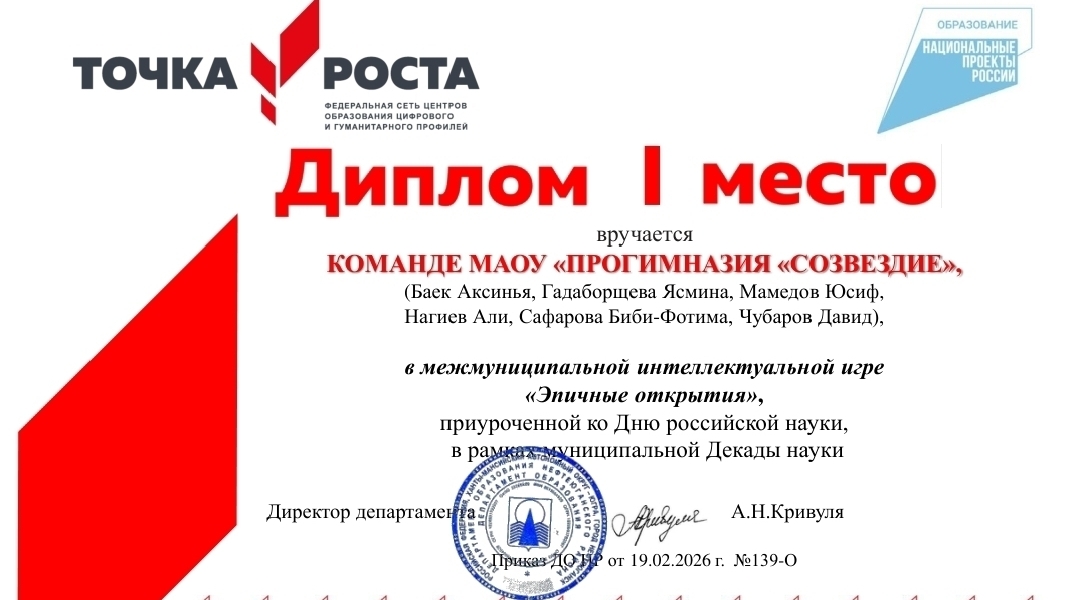 08.02.20268 февраля наша команда из 4 В класса "Орлята России" приняла участие в Межмуниципальной игре "Эпичные открытия"