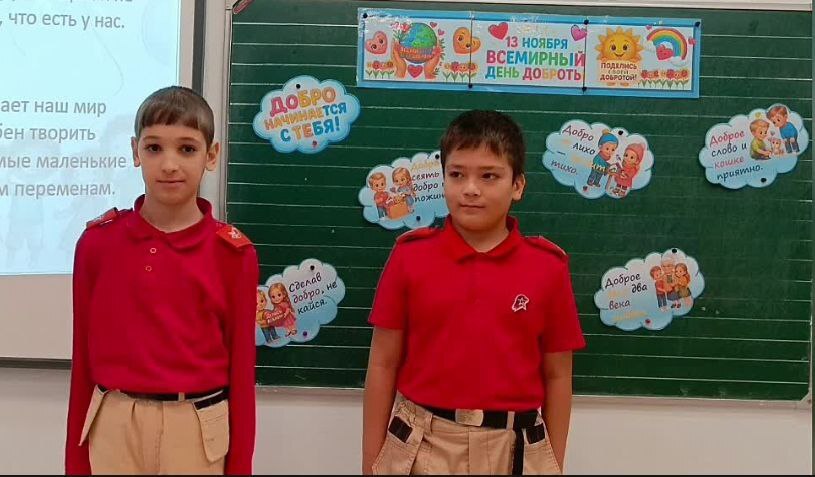 13 ноября в 3 «А» Юнармейском классе прошёл урок, посвящённый Всемирному дню доброты! Ребята с большим интересом слушали рассказ учителя об истории этого замечательного праздника. А после погрузились в оживлённую дискуссию: что такое доброта и какие добрые дела каждый из нас может совершать каждый день?