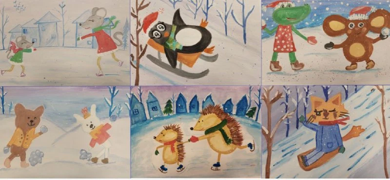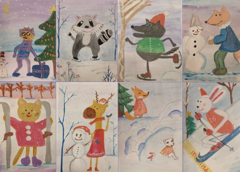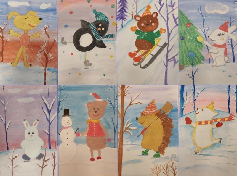 Дети активно готовились к новогодней выставке рисунков «Зимние забавы». Их работы передают всю прелесть зимней поры и создают особую атмосферу праздника.